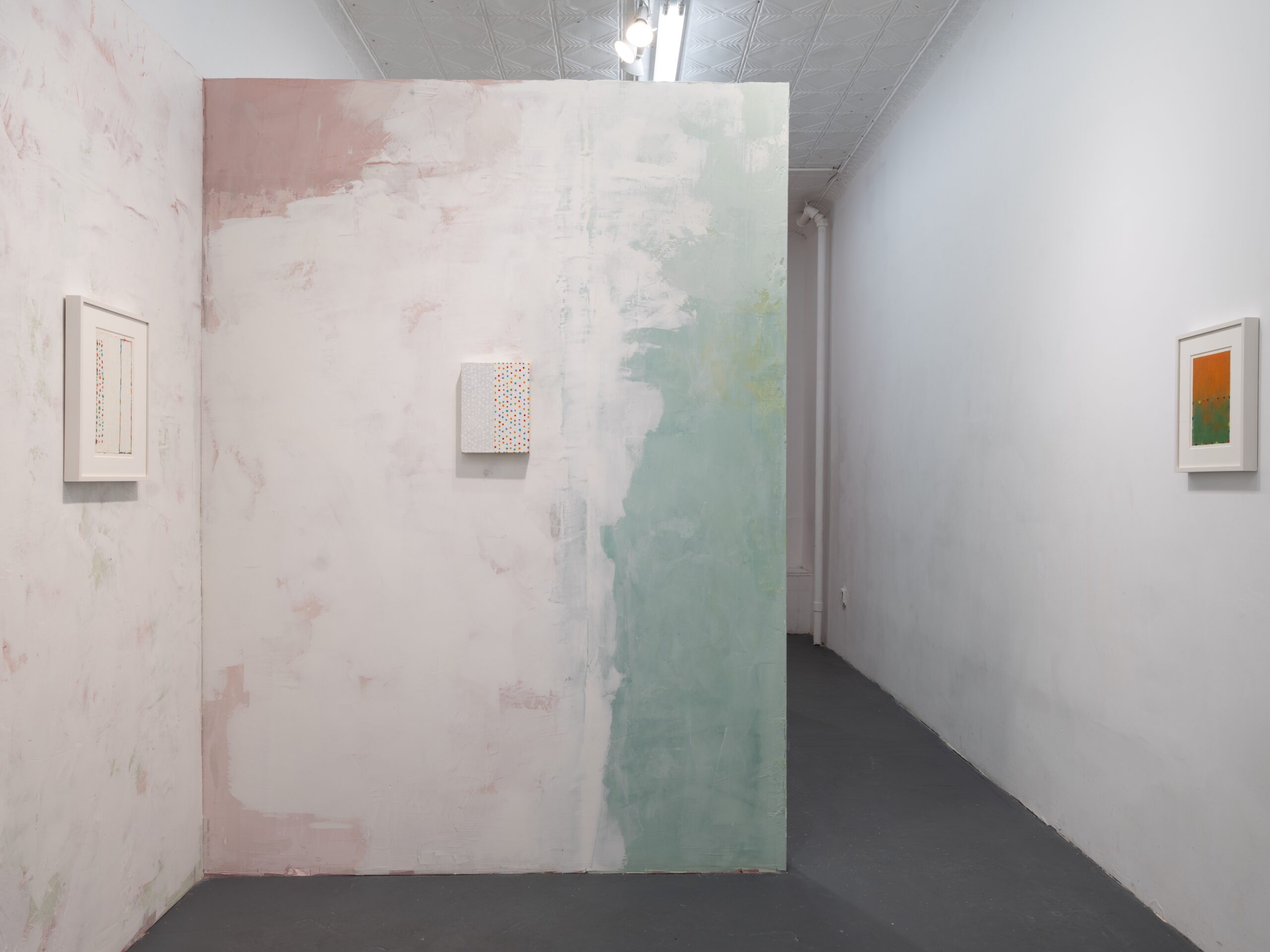 Considering this amplification, perhaps it is not coincidental that both these exhibitions, and their respective proprietors, refuse a neutral, white-walled gallery. Diacono’s Boston gallery has walls permanently painted in the colors of the four elements related to alchemical symbolism that, for each show, can attract only certain works—like calibrated magnets, the exhibition’s walls and Manasevit’s paintings attract each other. As for Dixon’s approach in NYC, the gallery walls are custom built and plastered in color with the paintings inset into the walls, emphasizing painting’s relevant surface, not its depth, and emulating through consideration the color pallet of Manasevit’s exhibited artworks.